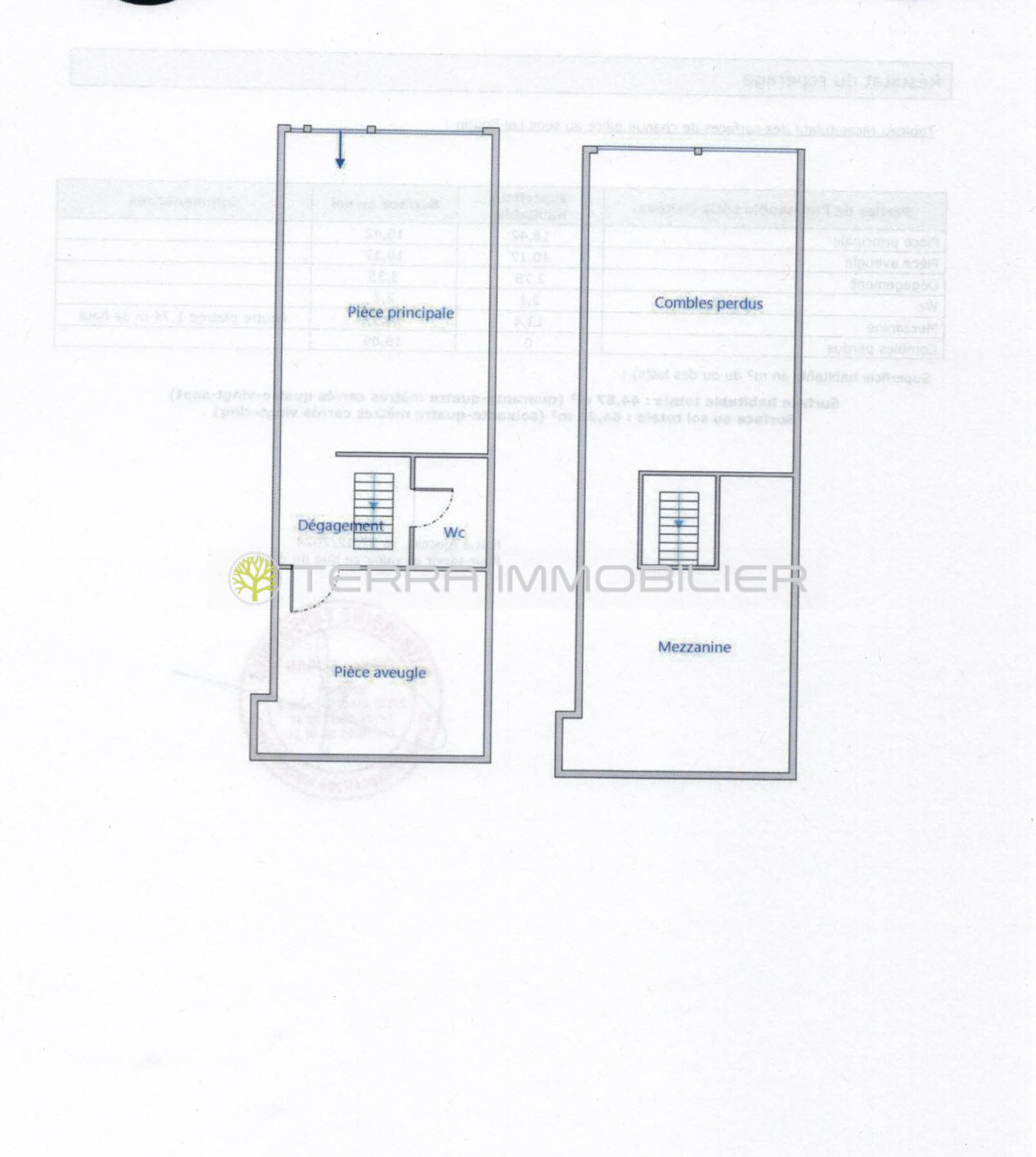 Il est composé au rez de chaussée d'une pièce d'accueil de 16,40 m², d'une pièce aveugle de 10 m², d'un WC; à l'étage d'une mezzanine de 14 m² et en plus de la surface de combles de 18 m², vitrine avec volet roulant manuel.