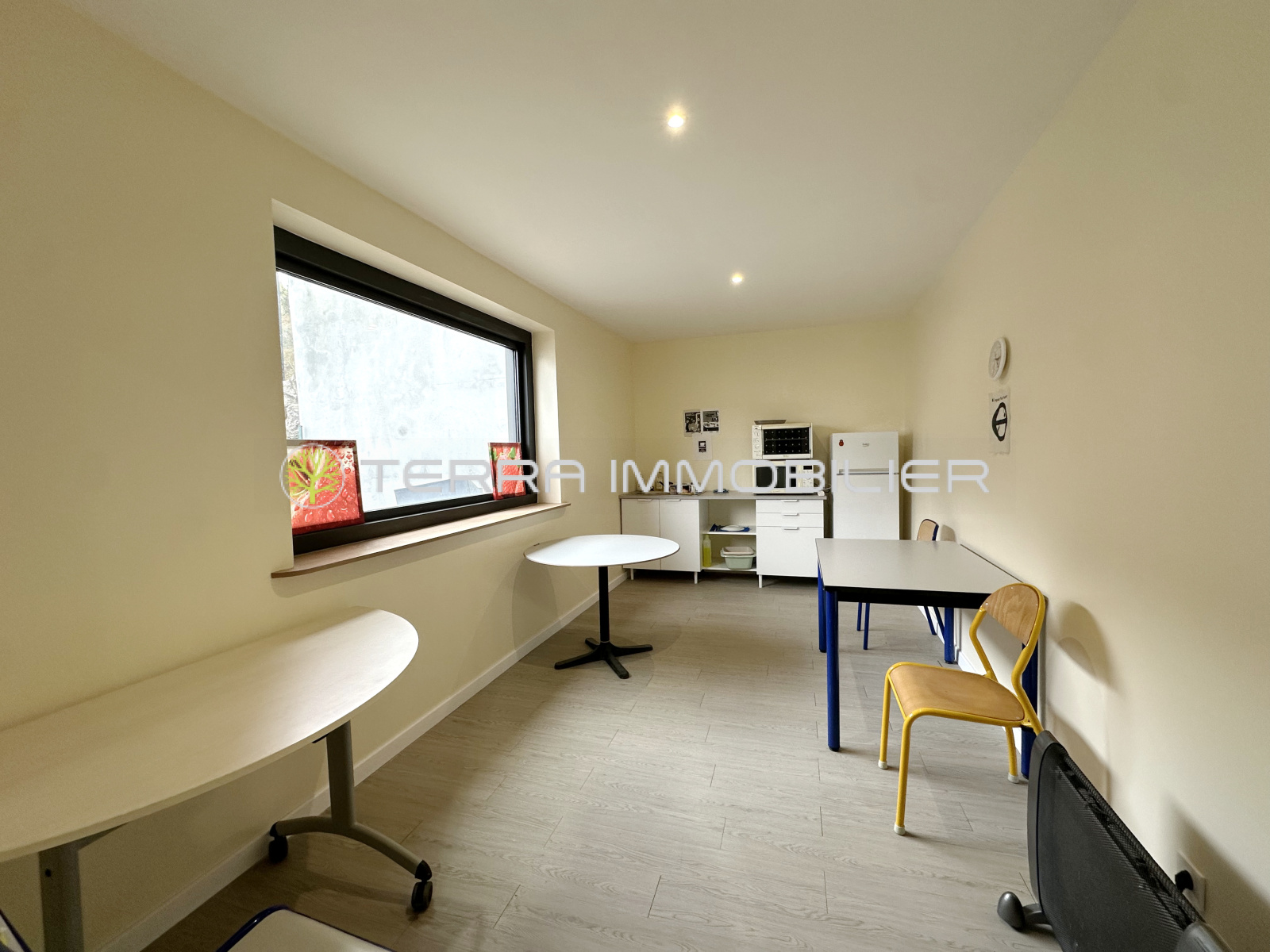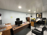 Il est pourvu de bureaux climatisés, sanitaires, espace cuisine.