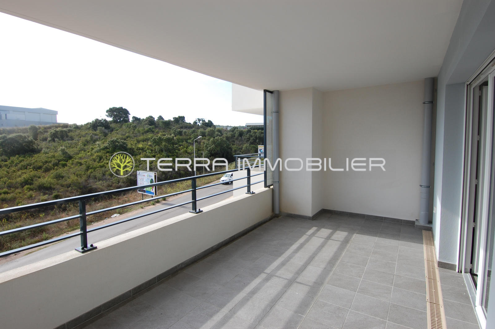 Terra Immobilier vous propose à la location à l'année un appartement T3 récent de 66,48 m² + terrasse de 15 m² situé Résidence du Stiletto à AJACCIO. Il est situé au 2ème étage avec ascenseur. Il comprend une entrée avec placard aménagé, un séjour avec climatisation réversible, une cuisine équipée (rangement, plaque de cuisson, hotte), 2 chambres avec placard aménagé, une salle d'eau, un WC, une place de parking en sous sol.