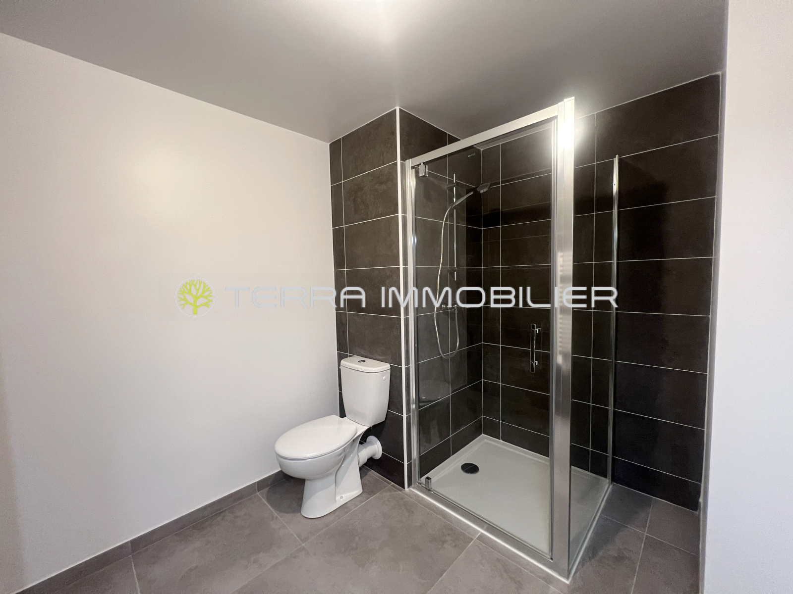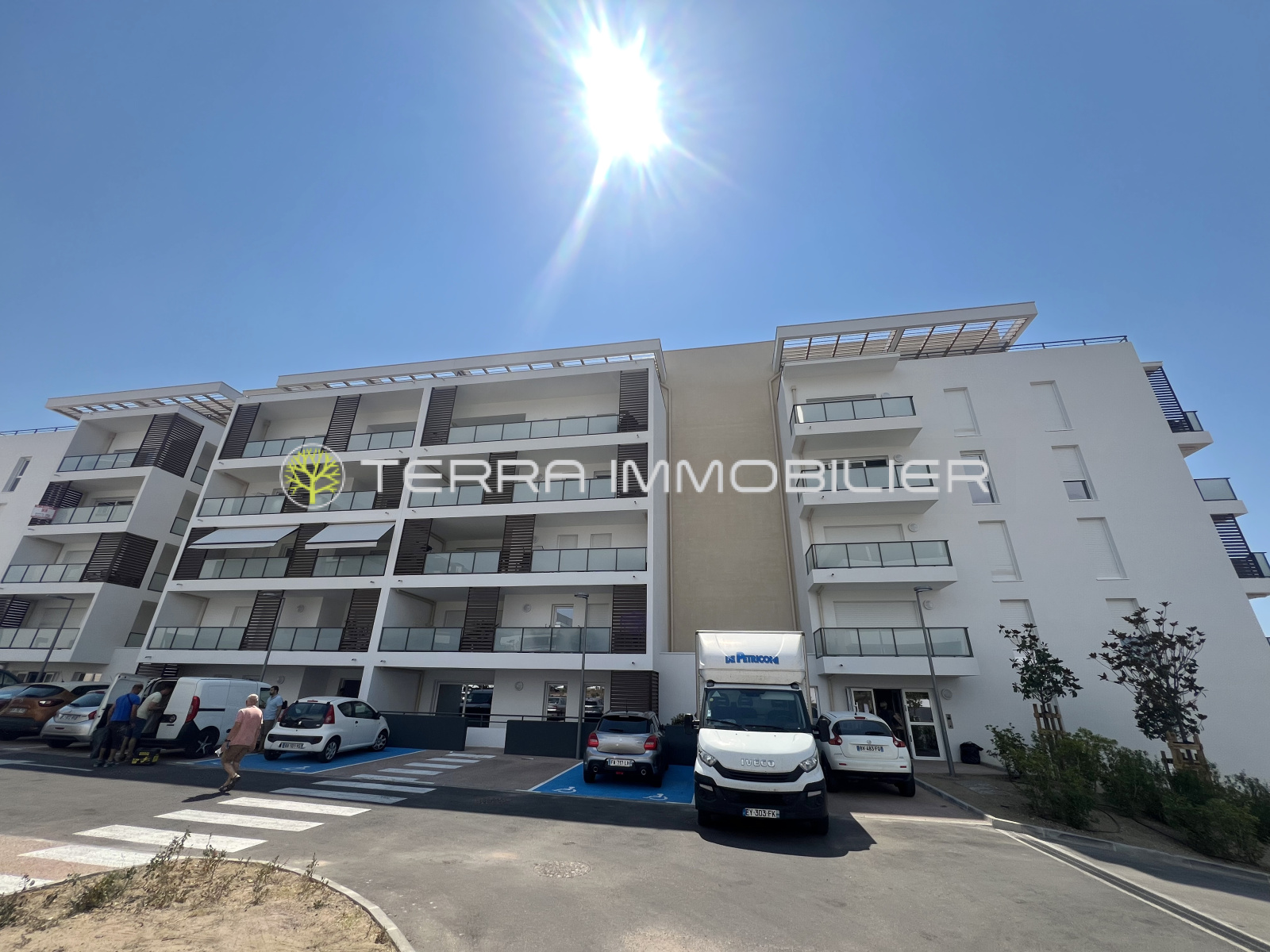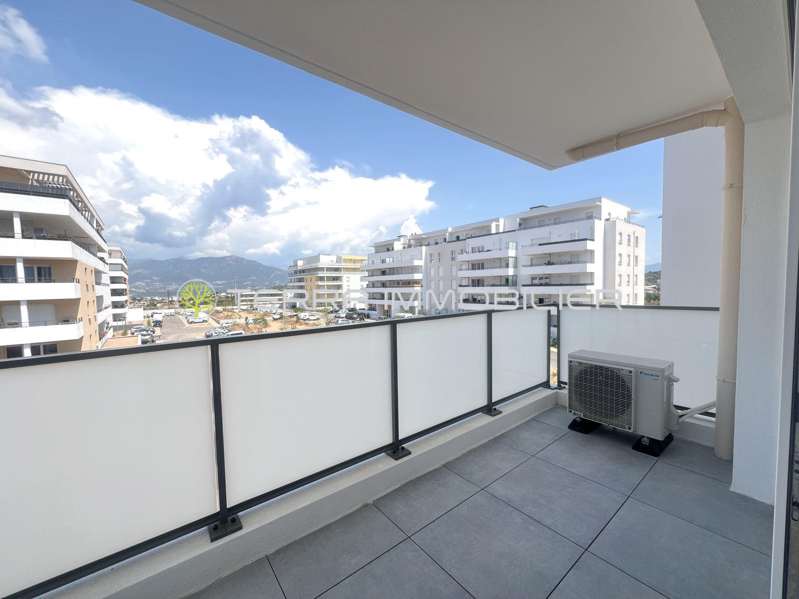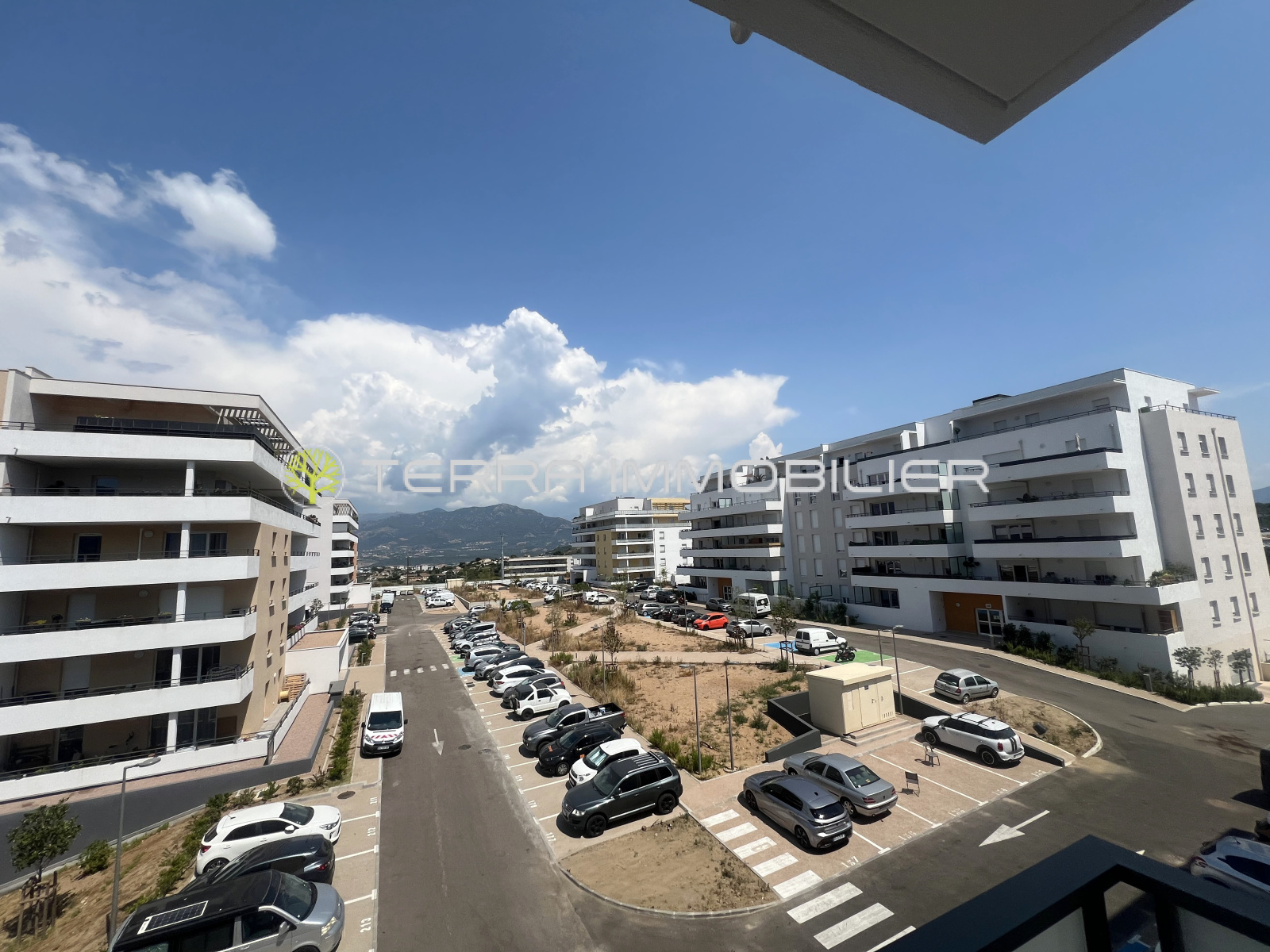 Terra Immobilier vous propose à la location à l'année un appartement Studio neuf de 30.78 m² + terrasse de 5.33 m² situé Résidence Les Terrasses du Stiletto à AJACCIO. Il est situé au 3ème étage avec ascenseur. Il comprend un hall d'entrée avec placard aménagé, un séjour/cuisine équipée (four, plaque de cuisson, hotte, réfrigérateur/congélateur), une salle d'eau/WC, une place de parking en extérieur.