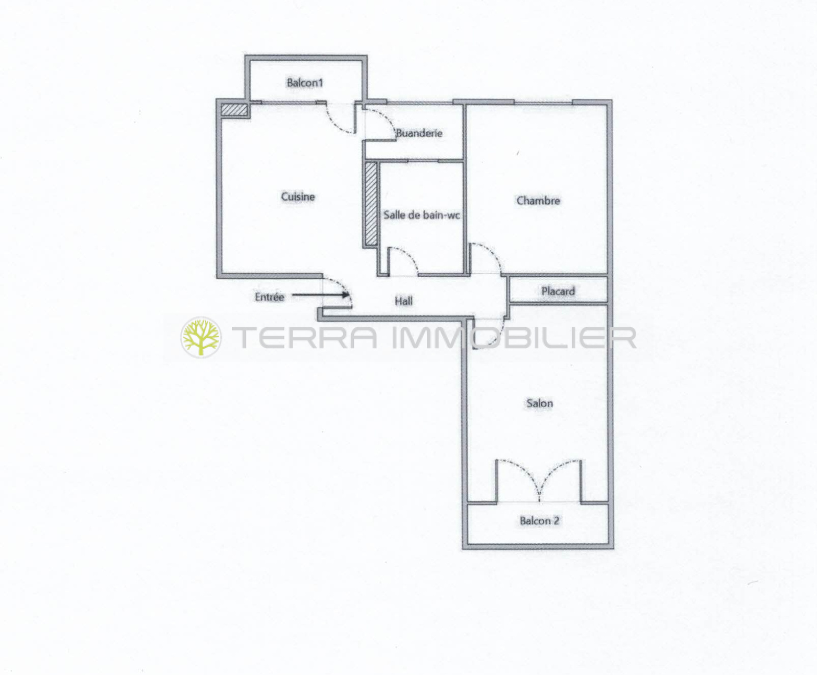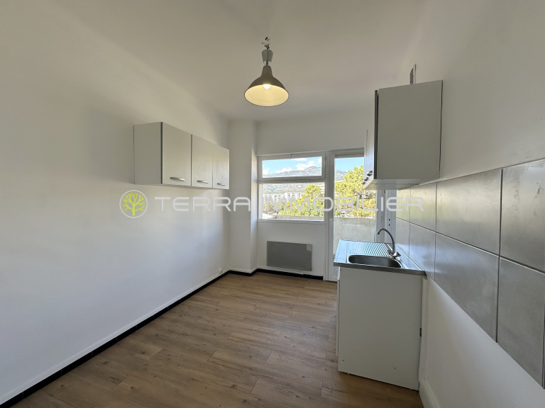 Terra Immobilier vous propose à la location annuelle un appartement de type F2 vide de 46,46 m². Il est situé au 4ème étage sans ascenseur immeuble Constellation avenue Noel Franchini. Il comprend une cuisine avec balcon, un cellier attenant, un séjour avec balcon, une chambre avec placard aménagé, une salle de bains avec WC. Parking collectif.