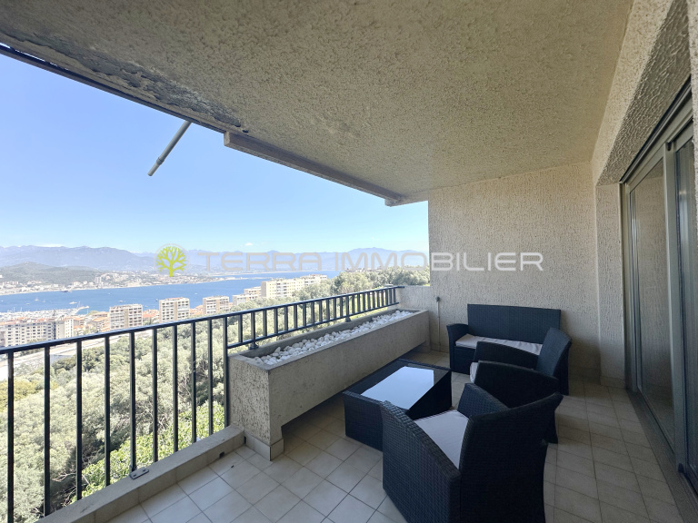 Terra Immobilier vous propose à la location à l'année vide, un spacieux appartement de type T2 situé Résidence Laetizia, immeuble Le Panoramic sur les hauteurs d'Ajaccio. Surface habitable de 51,60 m² ouvrant sur une vase terrasse de 15 m². Il comprend hall d'entrée avec rangements, un séjour, une cuisine équipée (réfrigérateur/congélateur, four, plaque de cuisson, hotte), une chambre avec rangements, une salle de bains, un WC. Double vitrage alu neuf. Le bien dispose d'une place de parking privative. Résidence entretenue, bénéficiant d'espaces verts, sécurisée par une barrière et pourvue d'un vaste parking collectif.