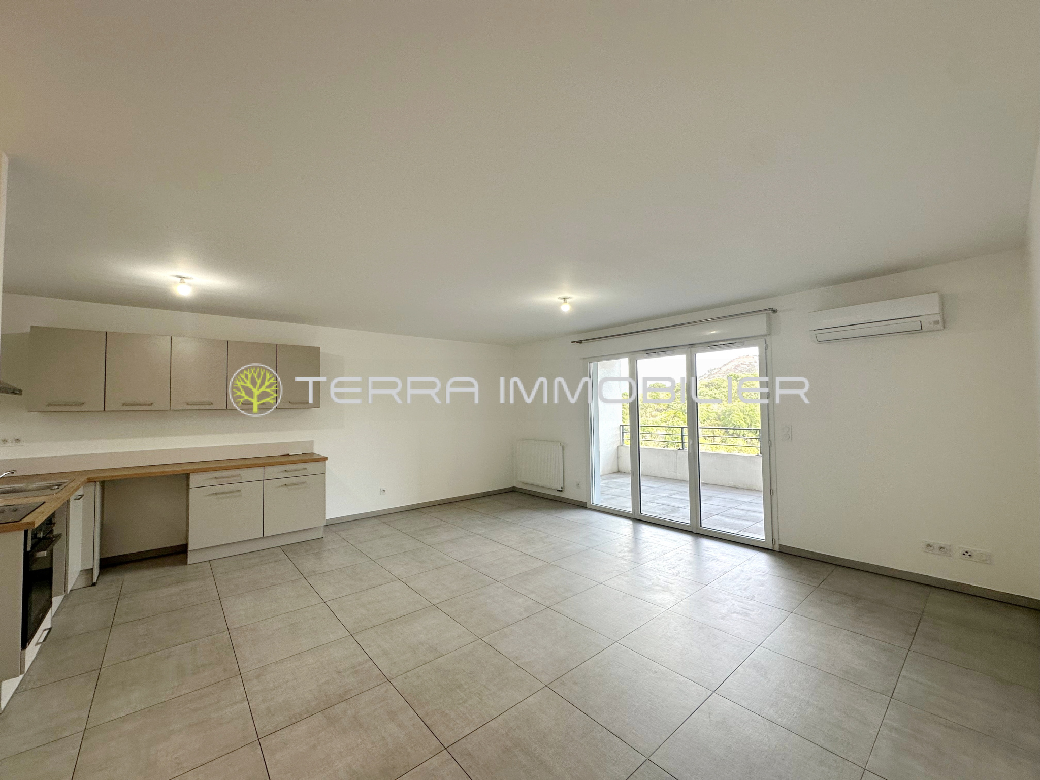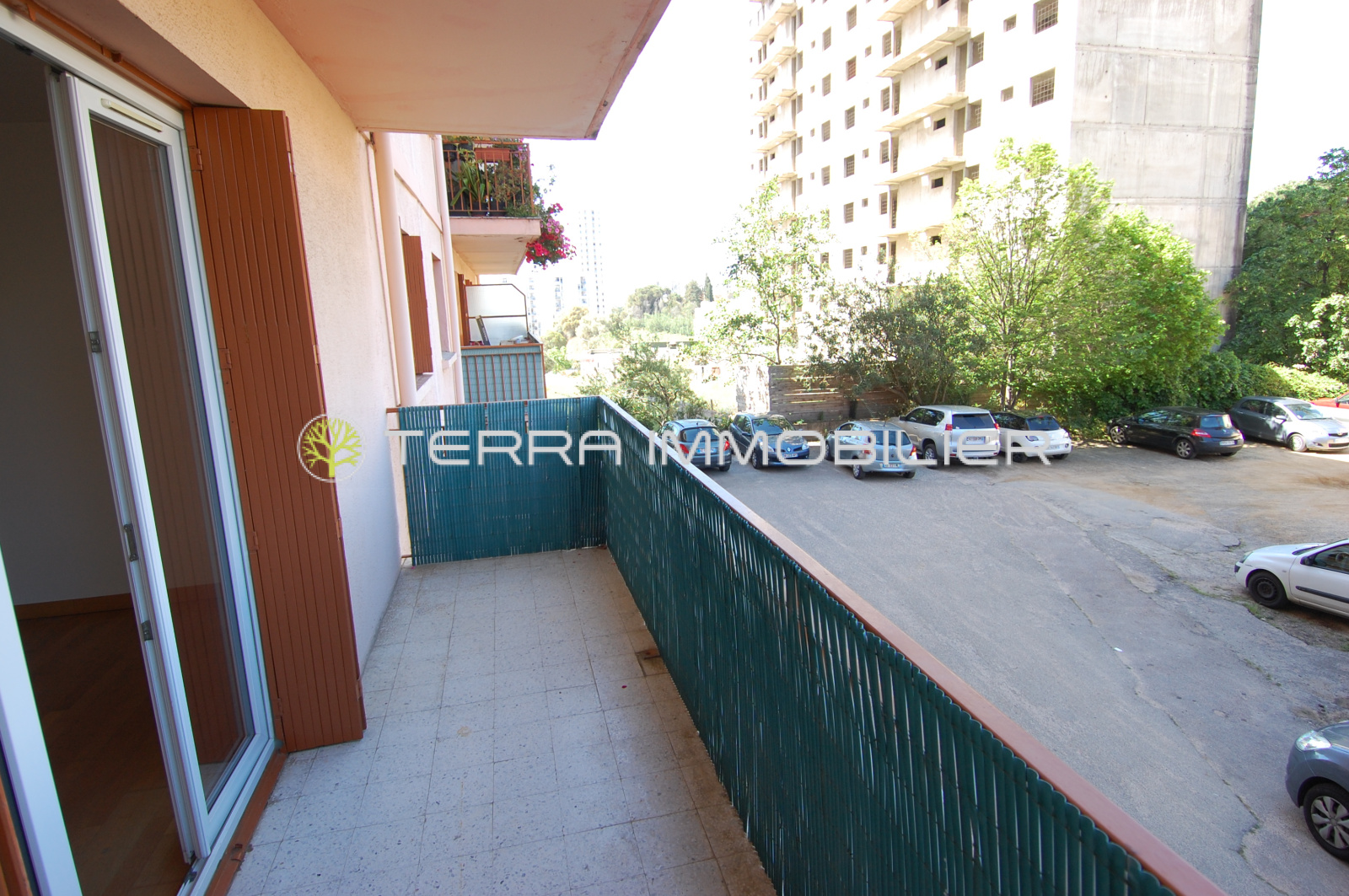 Terra Immobilier vous propose à la location à l'année un appartement de type F3 de 62,28 m² + terrasse situé à AJACCIO, Candia Résidence Avenue Maréchal Juin. Il est situé au 1er étage avec ascenseur. Il est exposé E/O. Il comprend un séjour de 18 m² avec climatisation réversible ouvrant sur une terrasse de 6 m², une cuisine de 9 m² équipée de rangement, four, plaque de cuisson et hotte donnant sur un balcon avec débarras attenant, deux chambres de 11 et 13 m² dont une avec placard, une salle de bain de 4 m², un wc séparé. Double vitrage PVC. Parking collectif. Libre actuellement. Loyer: 790€ dont 68€ de charges et ordures ménagères comprises avec régularisation annuelle. Dépôt de garantie: 722€. Honoraires de location: 678€ dont 189€ pour l'état des lieux.