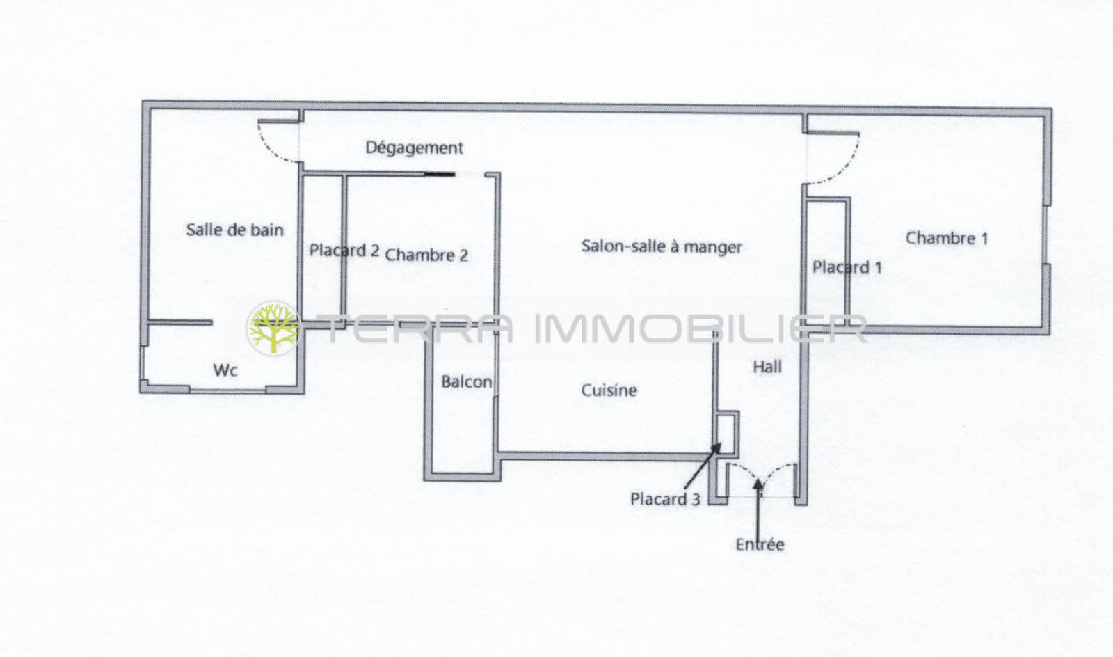 Terra Immobilier vous présente ce charmant T3 de 70,66 m² Loi Carrez comprenant une entrée, un séjour et son espace cuisine aménagée, 2 chambres avec rangement, une vaste salle de bain, un WC, un balcon.