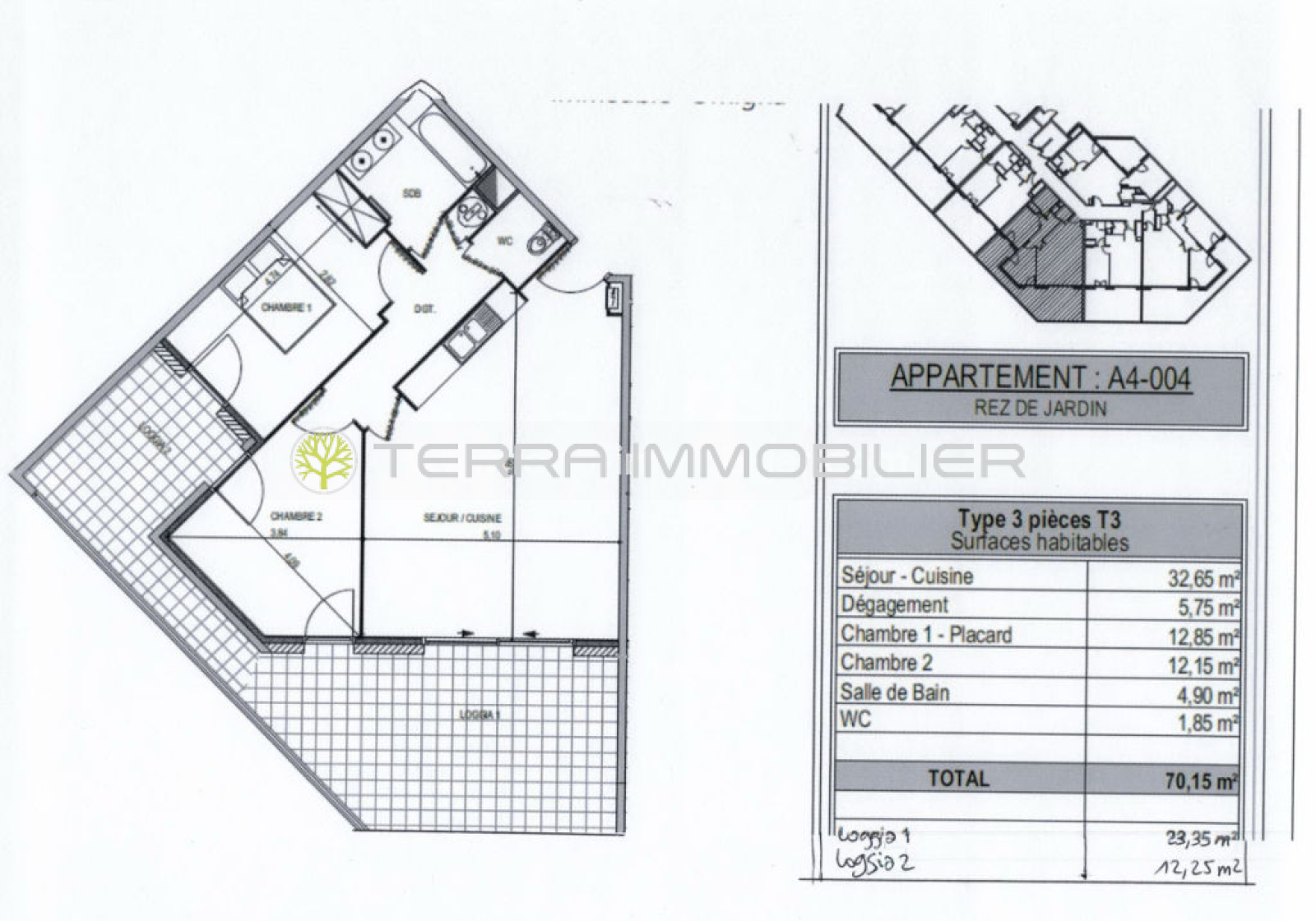 À l’extérieur, profitez de deux belles terrasses de 23 m² et 12 m², parfaites pour vos moments de détente.