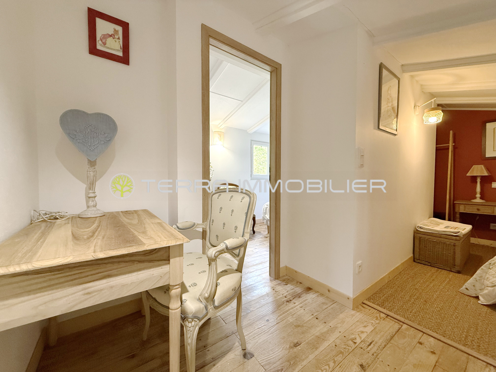 en rez-de-chaussée : un séjour avec une magnifique cuisine équipée ouvrant sur une terrasse de plain-pied, une salle de bains avec wc.