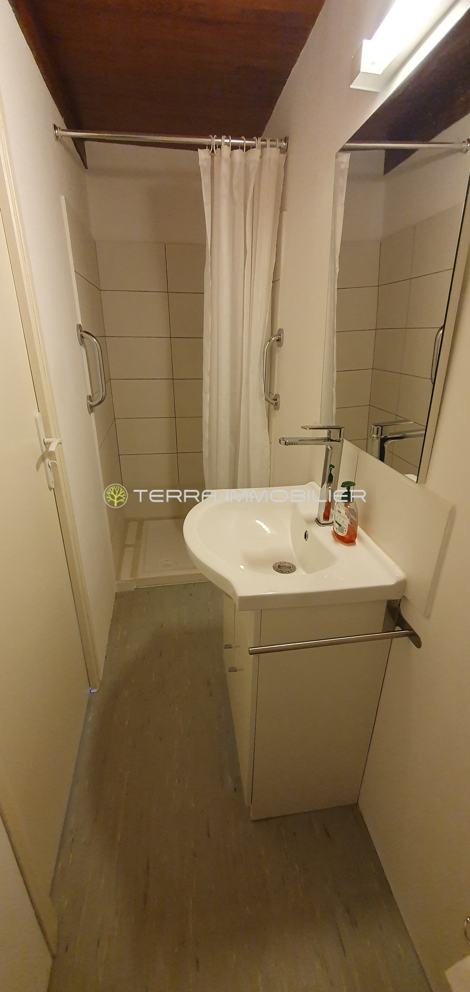 1er étage : cuisine-salle à manger, salon, douche-wc et terrasse.
