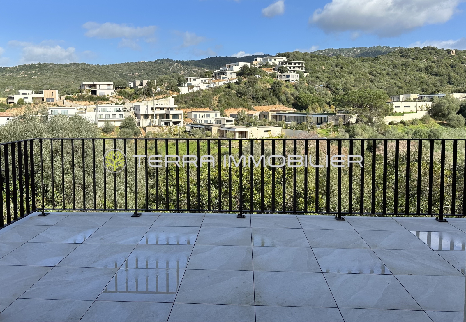 TERRA IMMOBILIER a le plaisir de vous présenter ce très bel appartement T3 de 71m2 situé au 1er étage d'une intimiste copropriété contemporaine de 6 lots dominant le maquis sur la route de Pietrosella à 3 minutes de la plage d' Agosta.